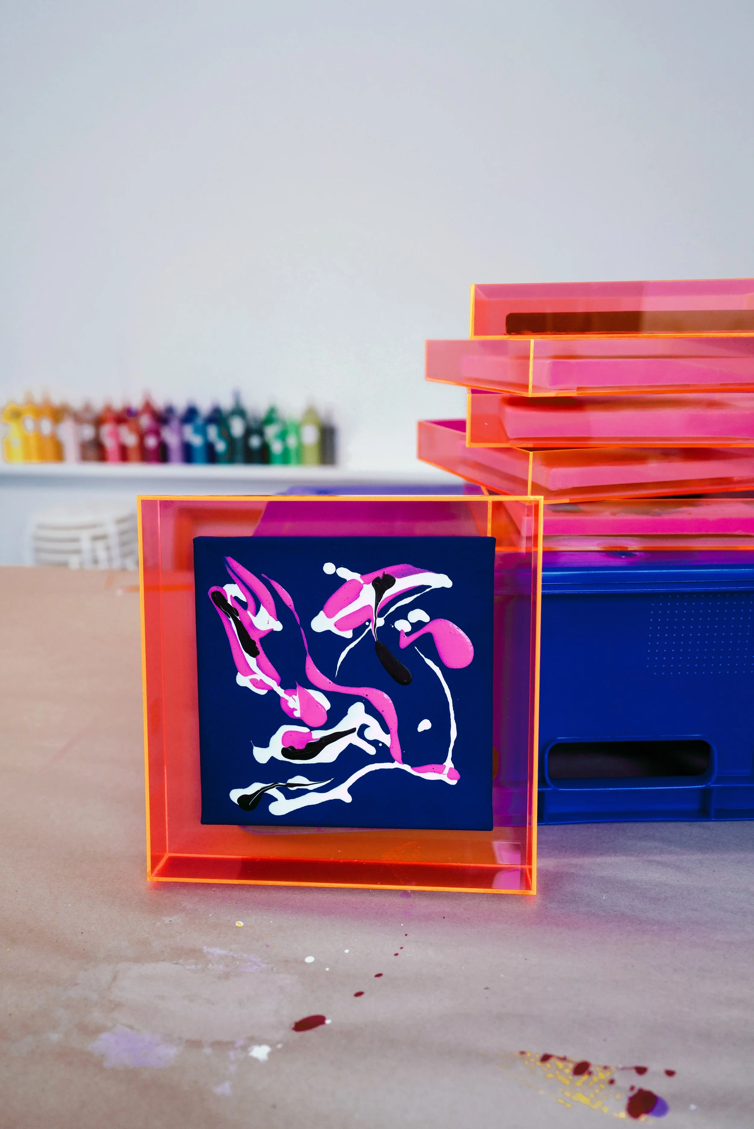 Bei shift darf – entgegen unseres digitalen Alltages – Neues, Unerwartetes, Anfassbares entstehen. Du experimentierst geführt mit Acrylfarbe, malst, sprühst, spachtelst, schüttest und wirst erstaunt sein, was dabei entsteht.