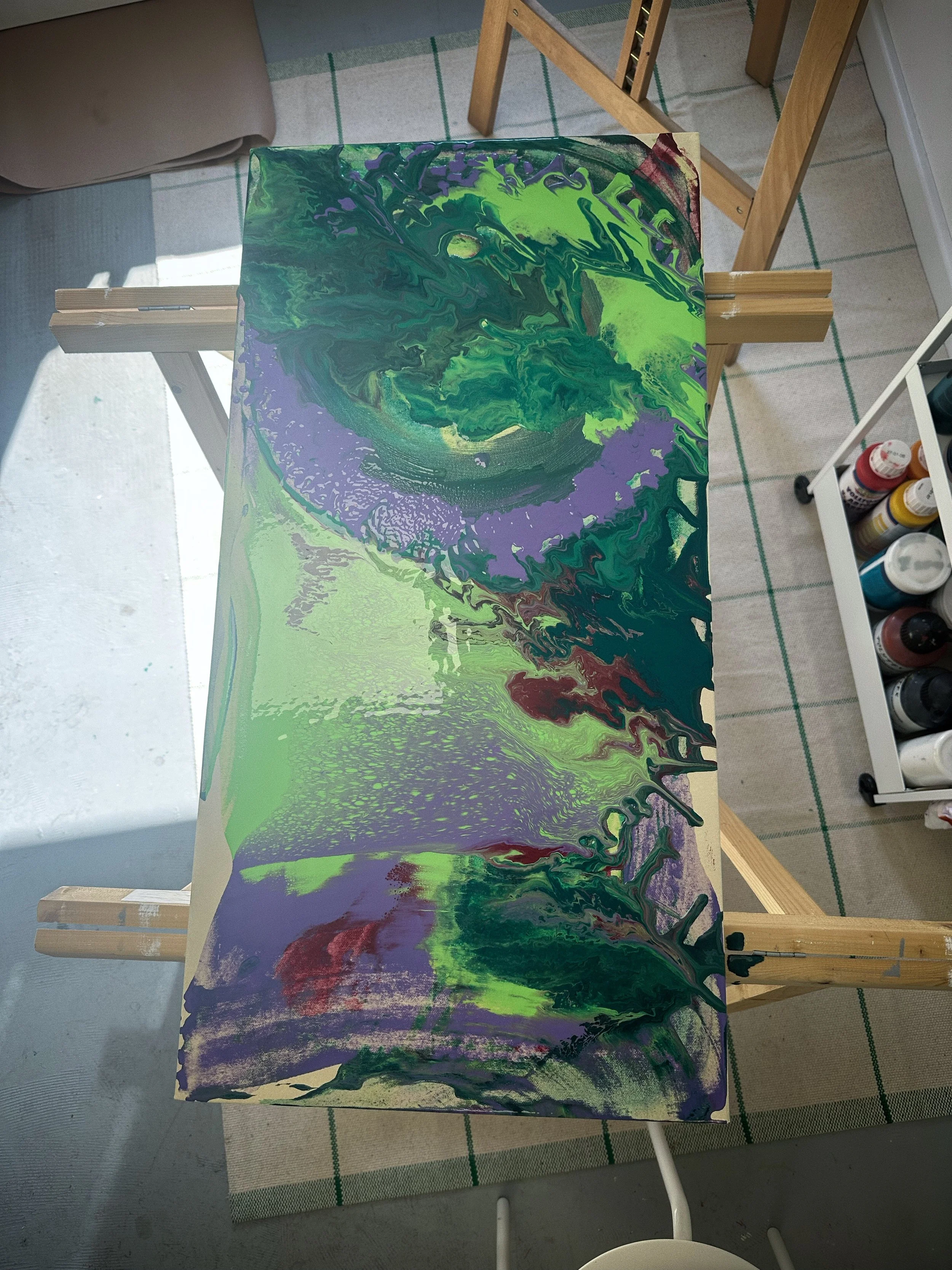 Wir überlassen der Farbe die Entscheidungen! Kaum eine Art zu Malen ist spannender. Man wird immer wieder von Fluss der verdünnten Farbe in Reaktion mit dem Untergrund überrascht. Über Trockenphasen lassen sich interessante Überlagerungen und tolle Muster erzeugen. Während der Session wir geschüttet, getropft und gestrichen mit Pouring Medium und Farbe direkt auf die Leinwand. Dieser Vorgang kann mehrmals wiederholt werden. Natürlich können wir auch zusätzlich mit Pinsel oder anderen Werkzeugen weitere Akzente setzen.