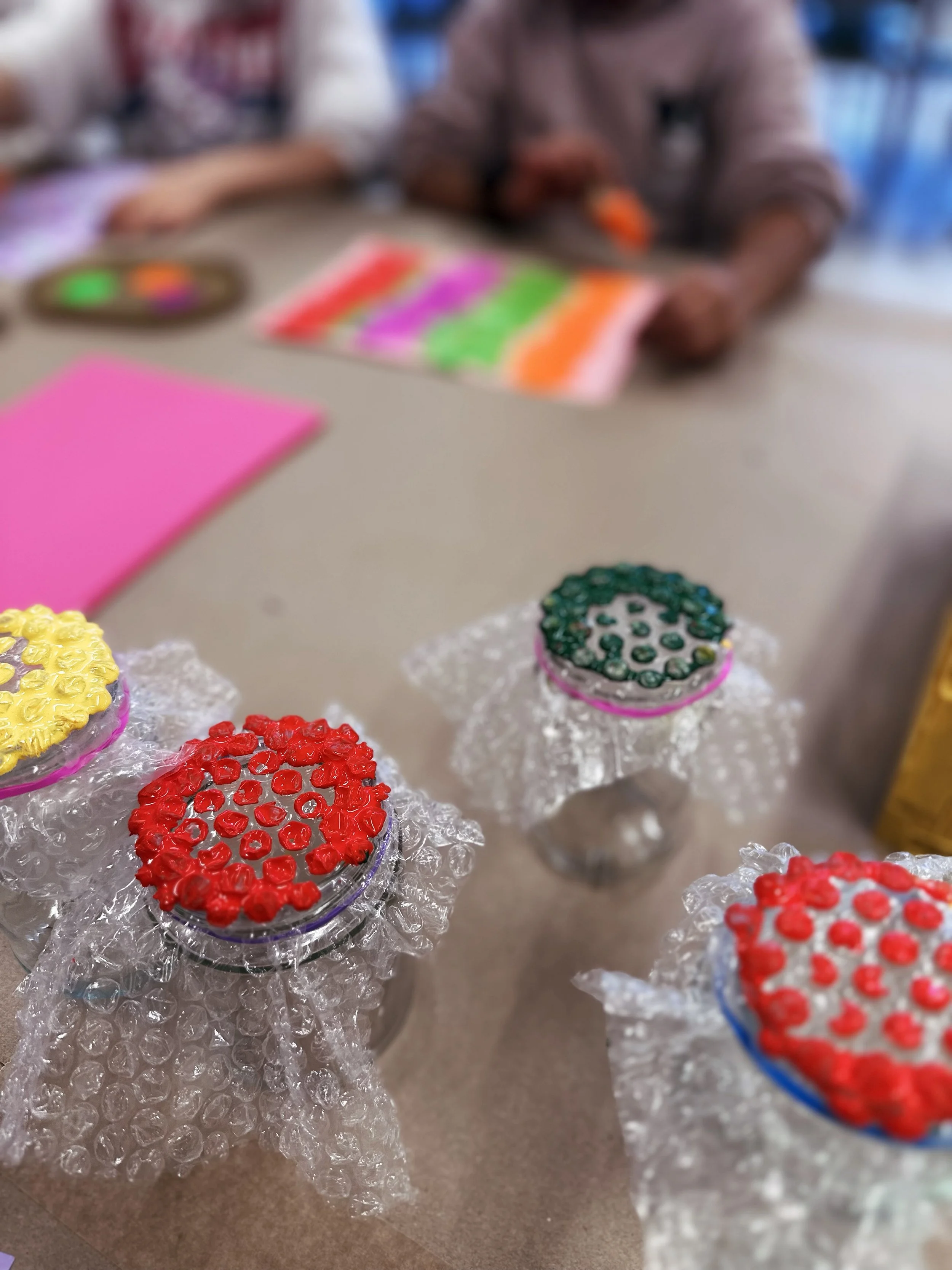 Die Kinder zeigen ihre Bilder und erleben, wie aus Experimenten ein eigenes Werk entstanden ist – ein Ausdruck ihres ganz persönlichen ICHs in Farbe.